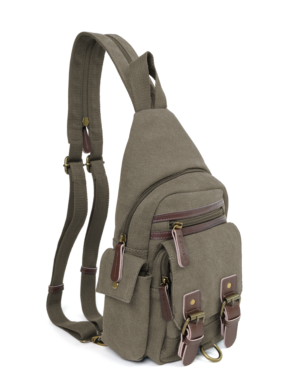 Jessie James Shasta Unisex Canvas & Leather Concealed Carry Sling Bag - Olive